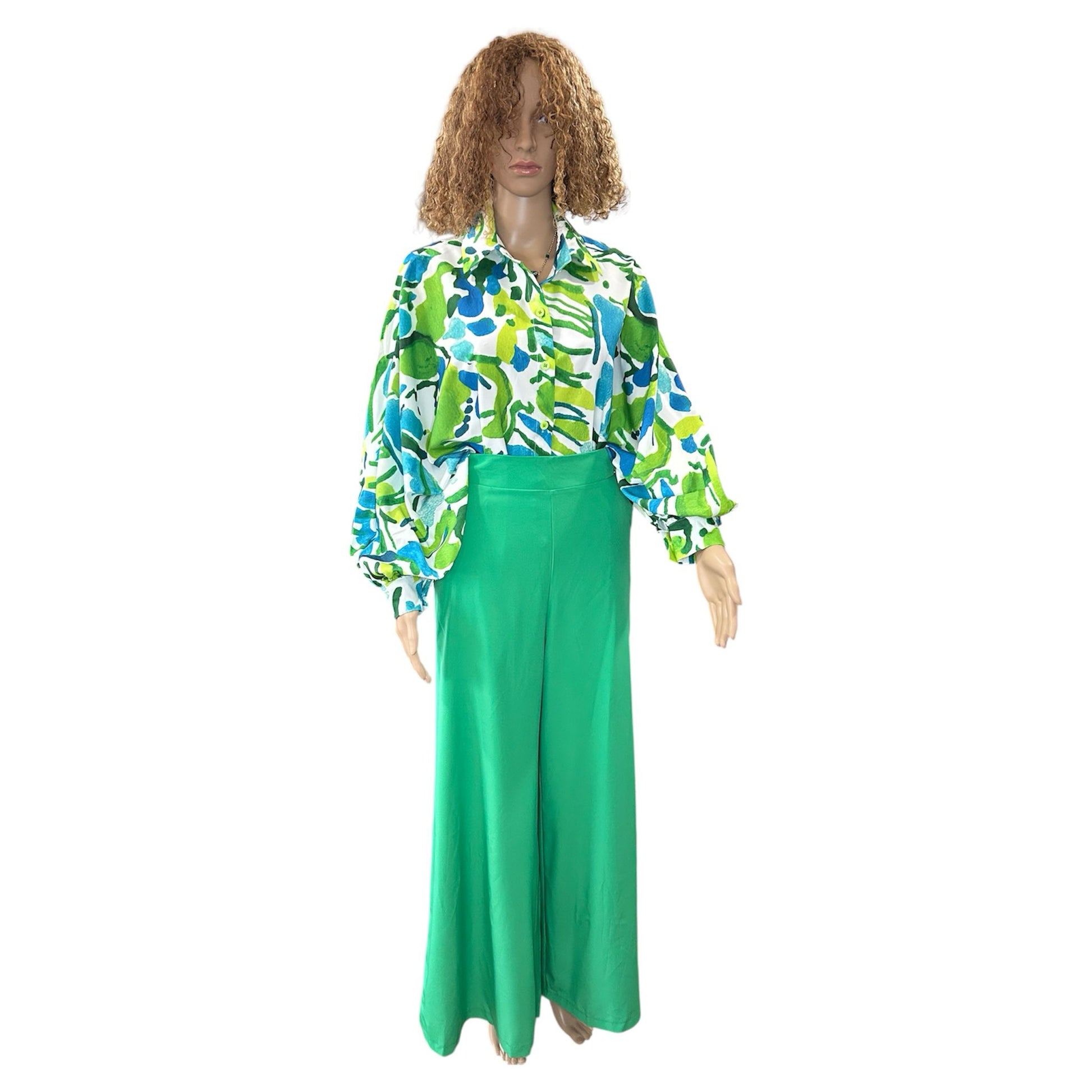 The Botanic Blur Two-Piece reworks the idea of print for cooler months. Deep green tones softened by blue undertones, designed to stand out quietly. Made from lightweight polyester, the fabric moves easily, catching light and shape in all the right ways. The relaxed fit feels easy but never undone.