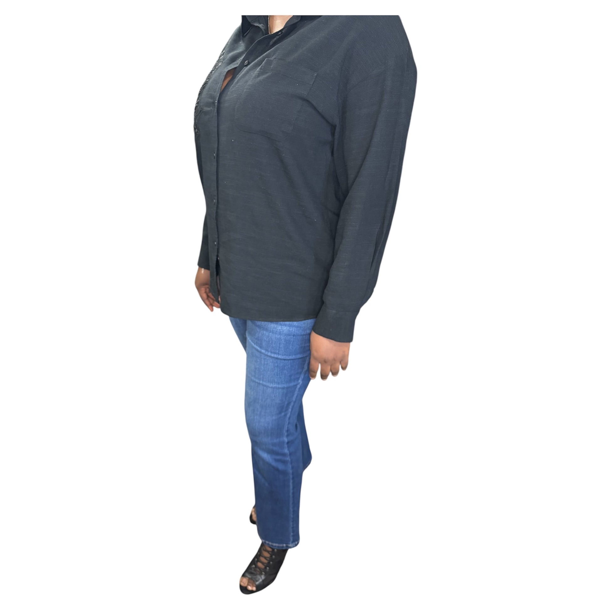Buttoned up with tailored pants for something polished, or open over a crop top and jeans when you’re off duty. Add earrings if you want to dress it up, but it holds its own either way.